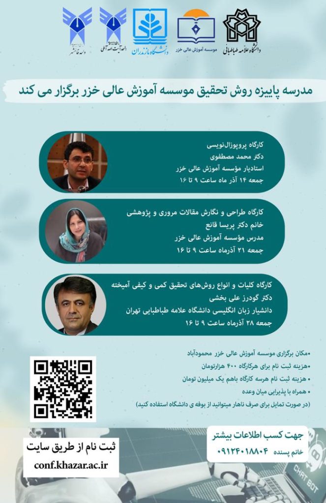 مدرسه ی پاییزه روش تحقیق موسسه آموزش عالی خزر برگزار می کند: